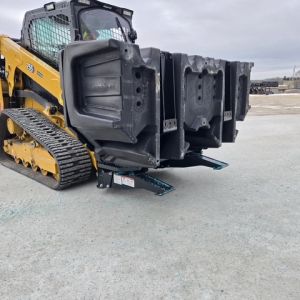 Both spreaders offer electronic free designs and rely solely on hydraulic power. No installation hardware required on the skid loader side which means any skid loader or compact wheel loader with a standard quick attach plate can operate the spreaders at any time.